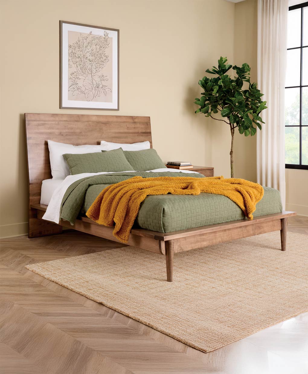 The Baymont Bed features a sleek, minimalist design with clean lines and a sturdy headboard, exuding artisan craftsmanship and heirloom-quality elegance.