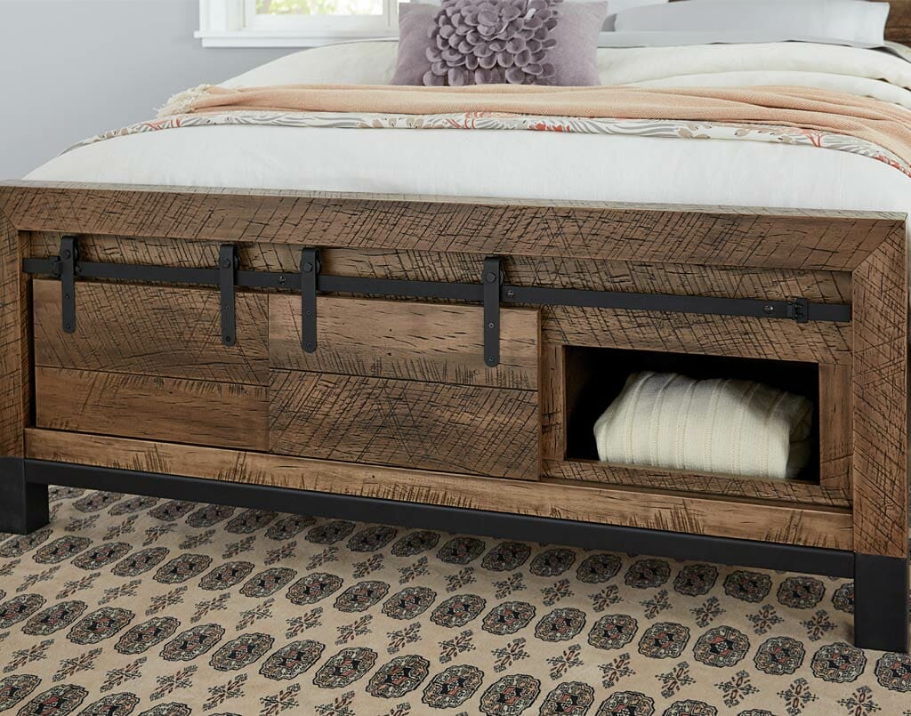 Available with sliding barnwood door in footboard or platform unit with toe kick