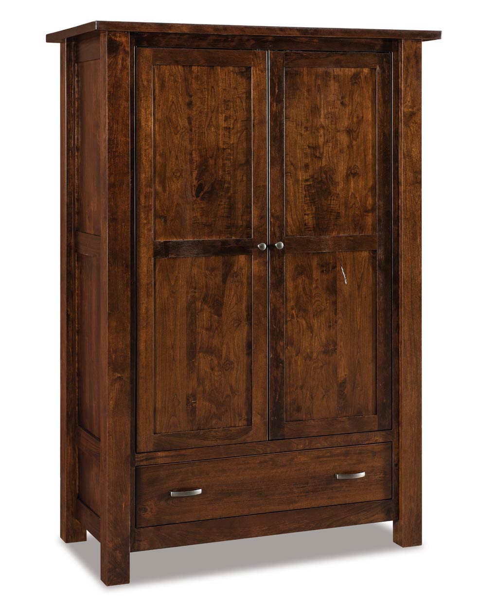 The Heidi Wardrobe Armoire is part of the Heidi Bedroom Collection. Clean, simple straight lines with solid 3″ corner posts, 1 ¼” tops and very popular hardware.