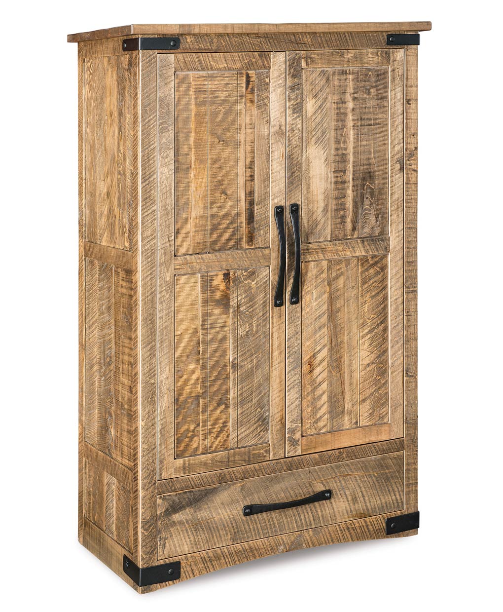Wrought iron corner brackets and oversized hardware make the Orewood Wardrobe Armoire a great choice for your bedroom.