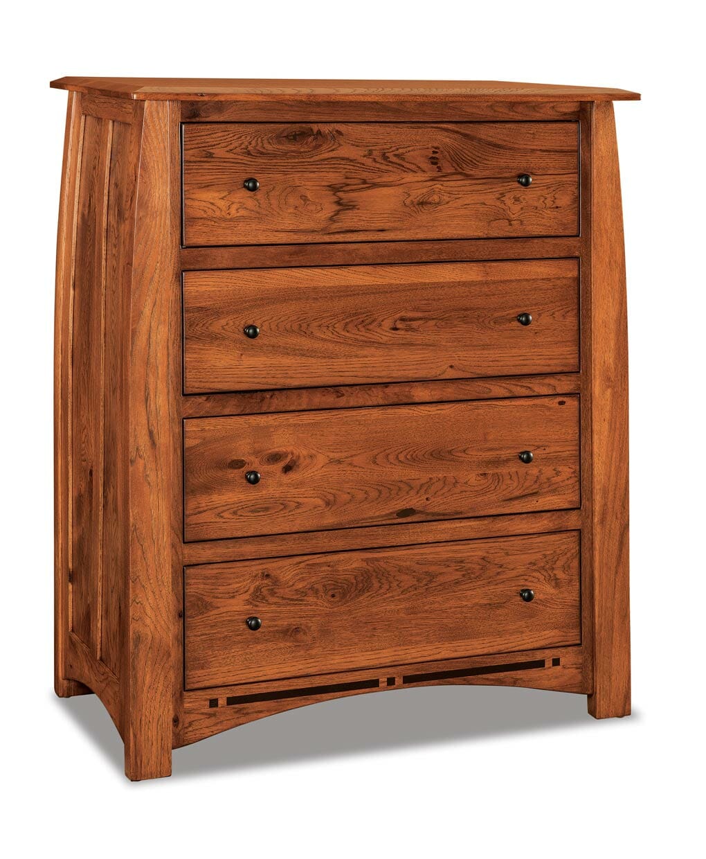 The Boulder Creek 4 Drawer Chest is part of the Boulder Creek Collection. The Boulder Creek Collection features a softly bowed lines with graceful vertical profile and distinctive black inlays.