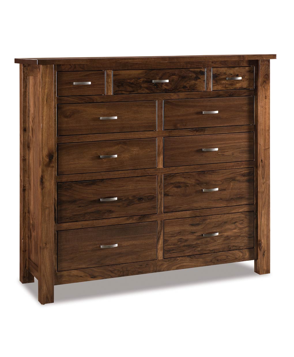 The Heidi 11 Drawer Double Chest is part of the Heidi Bedroom Collection. Clean, simple straight lines with solid 3″ corner posts, 1 ¼” tops and very popular hardware.