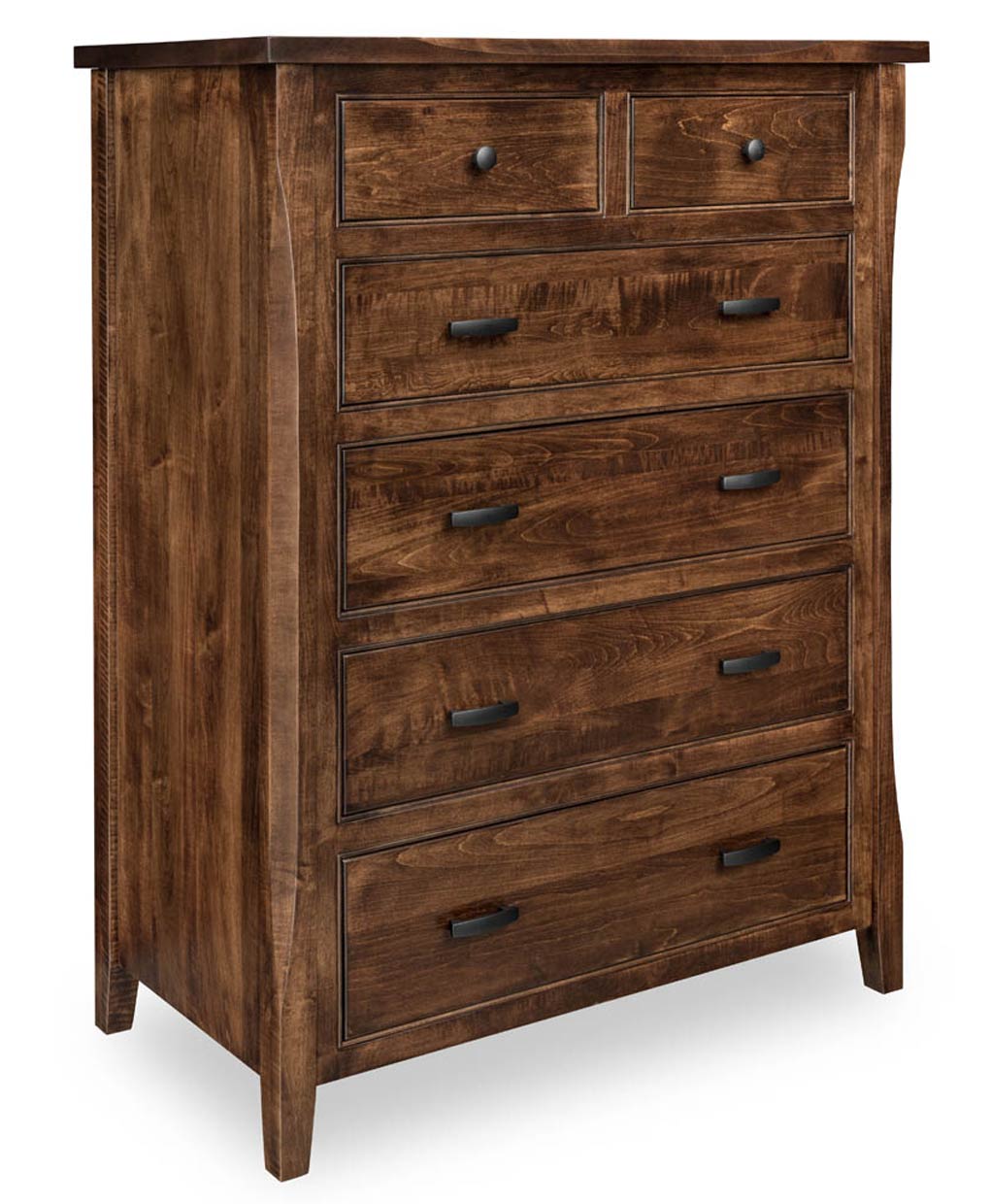 The Longmont 6 Drawer Chest features elegant curves and classic lines in its solid wood frame, offering an heirloom-quality storage solution.