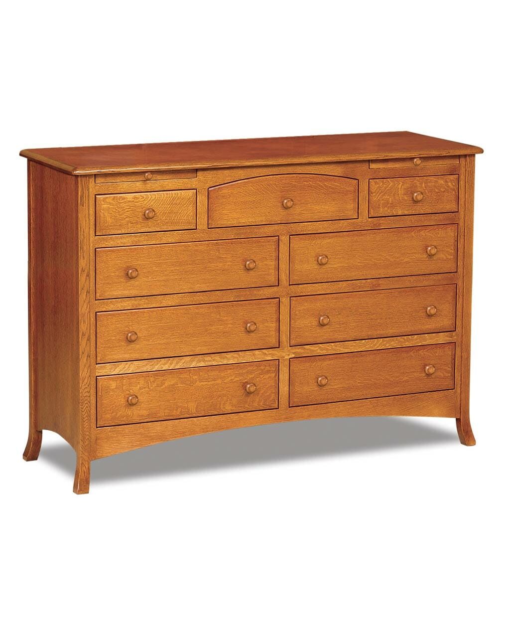The Carlisle 9 Drawer Dresser with Arched Drawers and Jewelry Drawers is part of the Carlisle Collection. It features 1 inch solid wood tops with rounded edges and corners.