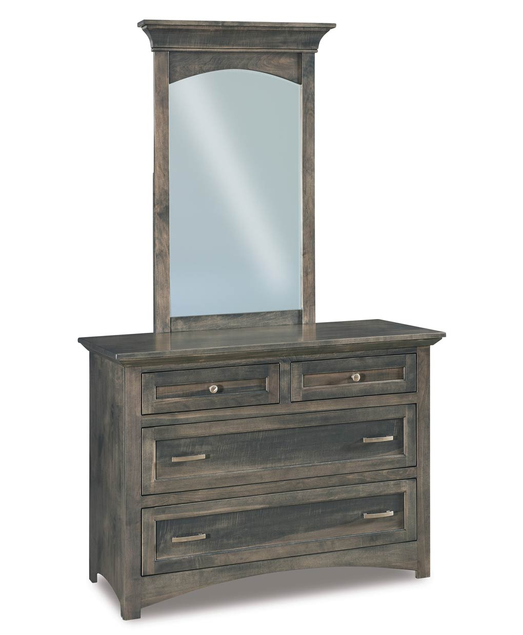 The Lincoln 4 Drawer Dresser (JRLN-051-1) is part of the Lincoln Collection. The Lincoln Bedroom Collection features classic styling featuring flat panel drawer fronts and arched bases. Beveled crown molding at top.