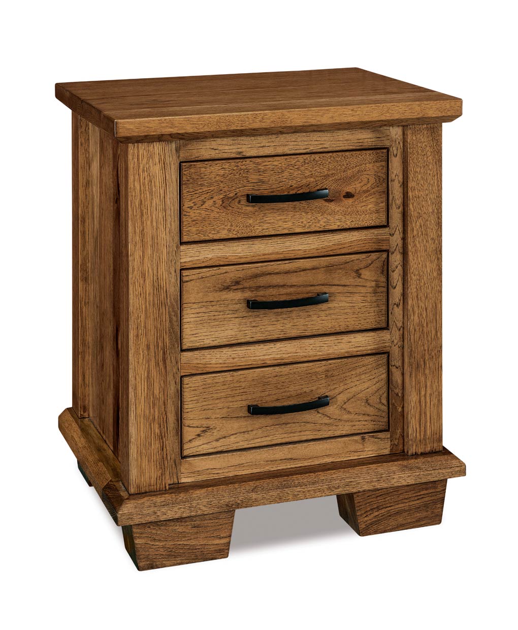 Enhance your rustic bedroom with the handmade Burlington Nightstand, featuring practical storage through its 3 smooth-gliding drawers.