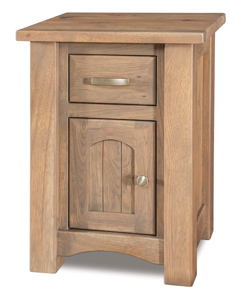 Discover the Timbra Nightstand, showcasing artisan craftsmanship with a single drawer and an arched door design for heirloom-quality elegance.