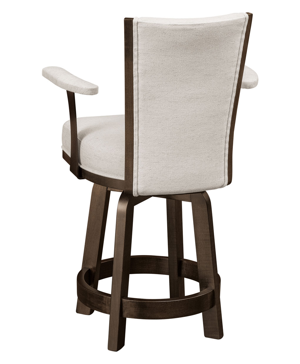 The Caraway Bar Stool combines Amish craftsmanship with a practical swivel design, providing comfort and functionality for any home bar or kitchen.