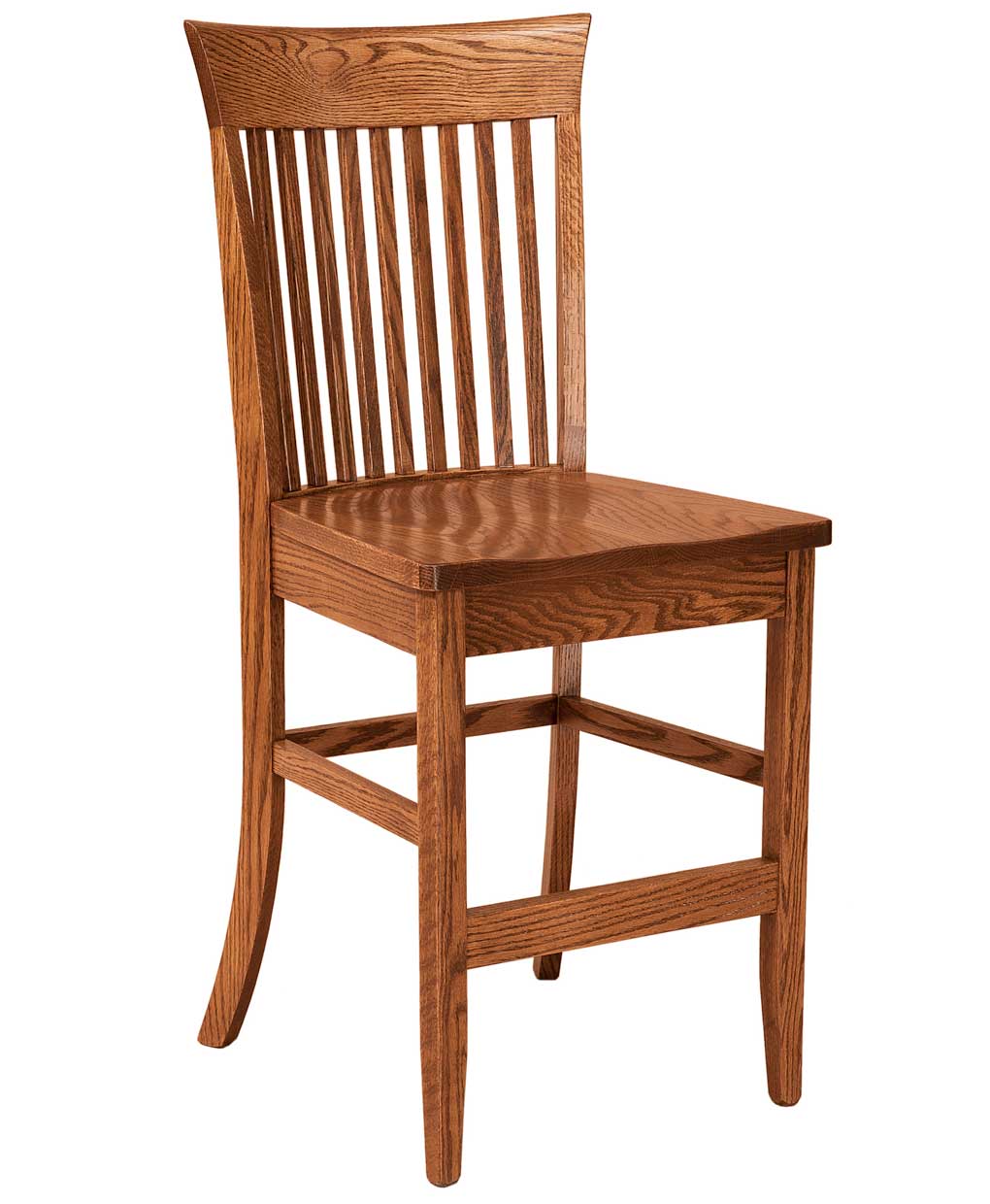 The Carlisle bar stool combines the timeless beauty of Amish craftsmanship with a slat back design featuring a graceful single bend. Handmade with meticulous attention to detail, this stool showcases the durability of solid hardwood while providing a stylish and comfortable seating option for any bar or kitchen counter.