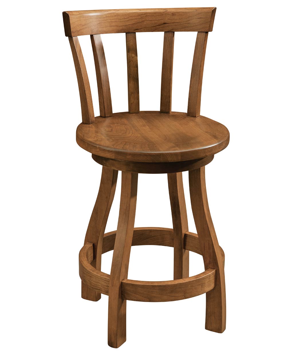 The Olympia Bar Stool, with its curved backrest and round seat, combines classic design and sturdy construction, making it a versatile choice for any bar or kitchen.