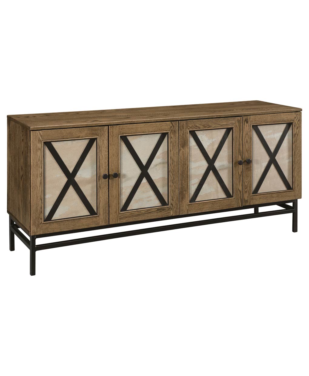 The Oxford Designer Server blends modern and rustic elements with its striking X-patterned doors, offering practical storage and a bold design statement for any dining room.