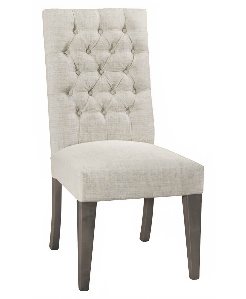 The Copenhagen Dining Chair features a tall, tufted back and a sturdy, four-legged solid wood frame, perfect for elegant dining.