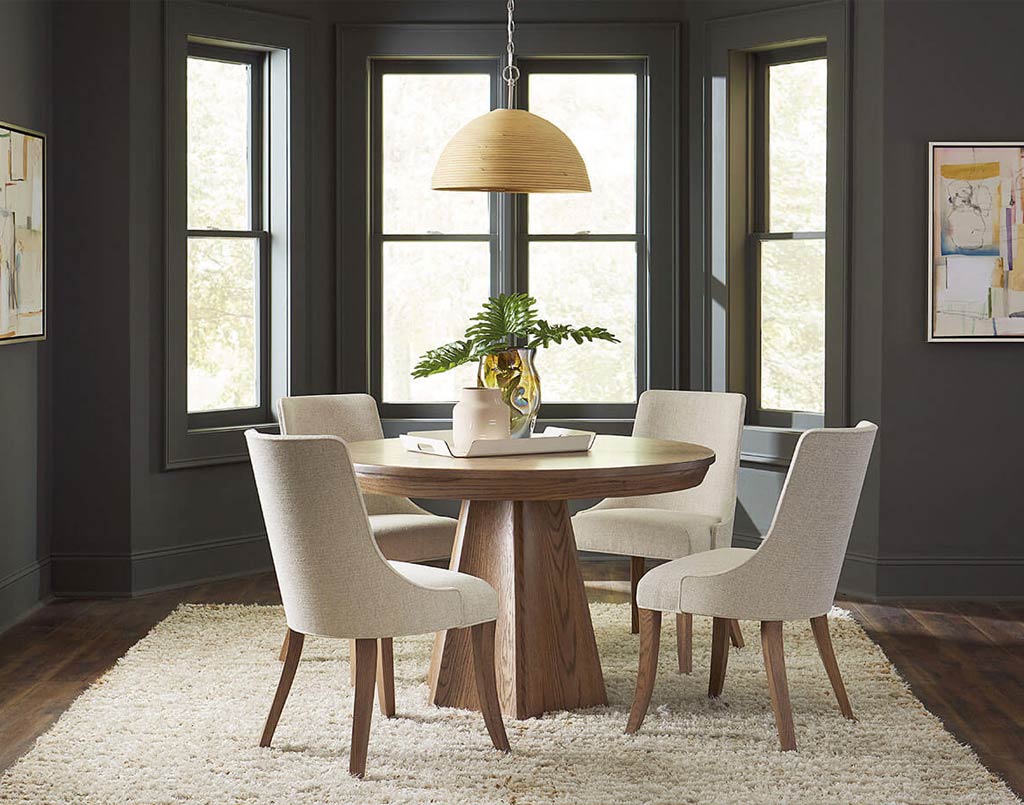 The Brogan Pedestal Dining Table features bold modern styling with clean lines and Amish craftsmanship built to last for years to come.