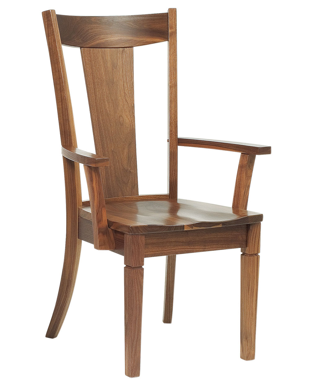 Made out of solid American hardwoods and built by skillful Amish artisans ensures the Parkland Dining Chair to last for generations. The Parkland dining chair is shown in Walnut with a Natural finish.