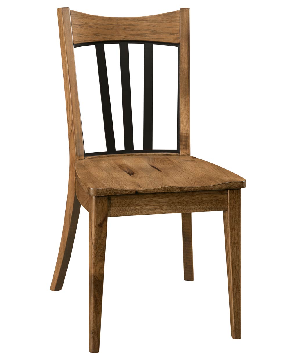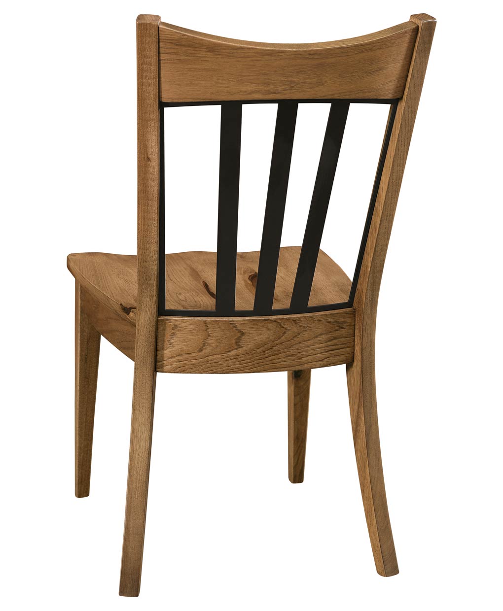 The Waverton Dining Chair showcases Amish craftsmanship with a distinct metal slat back, offering a blend of durability and modern style for any dining space.