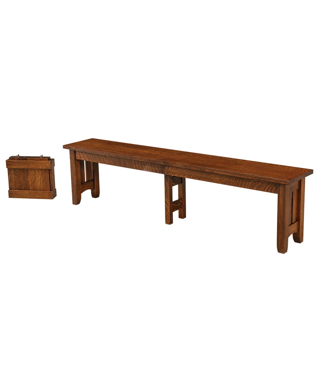 The Galena extend-a-bench can come with four 12″ wide leaves. This bench will be either a 4, 5, 6, 7, or 8 foot bench for the entire family.