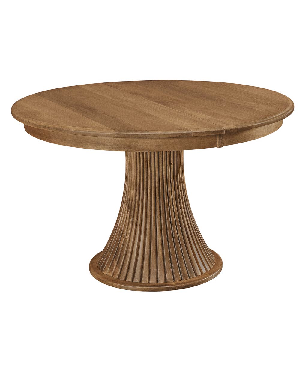 This Amish-made Ashlyn Single Pedestal Dining Table features a robust, artfully shaped base, creating a timeless centerpiece for family dining.