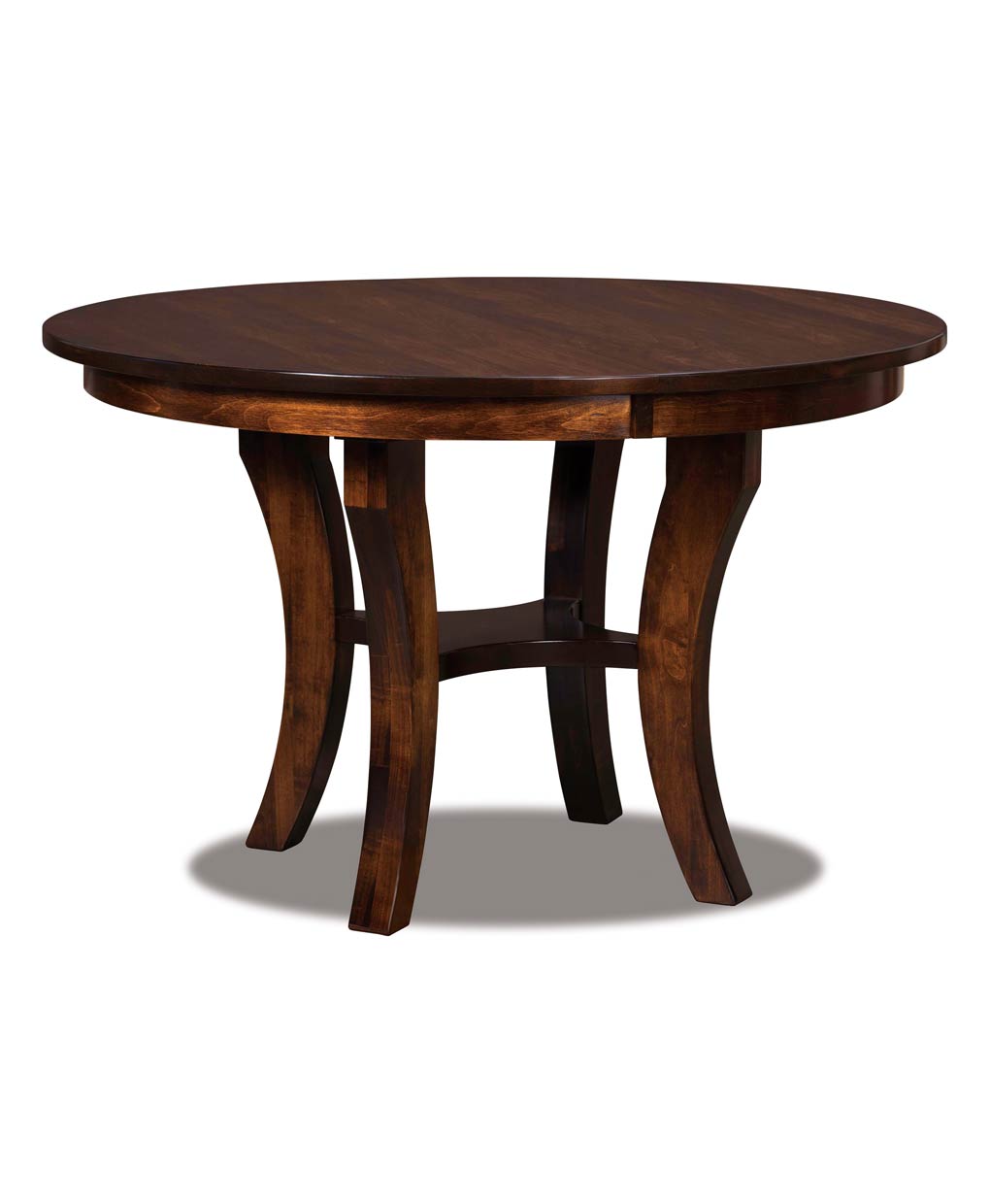The Amish-made Madison Pedestal Table combines graceful curved legs with expert craftsmanship, offering a stylish and durable centerpiece for dining spaces.