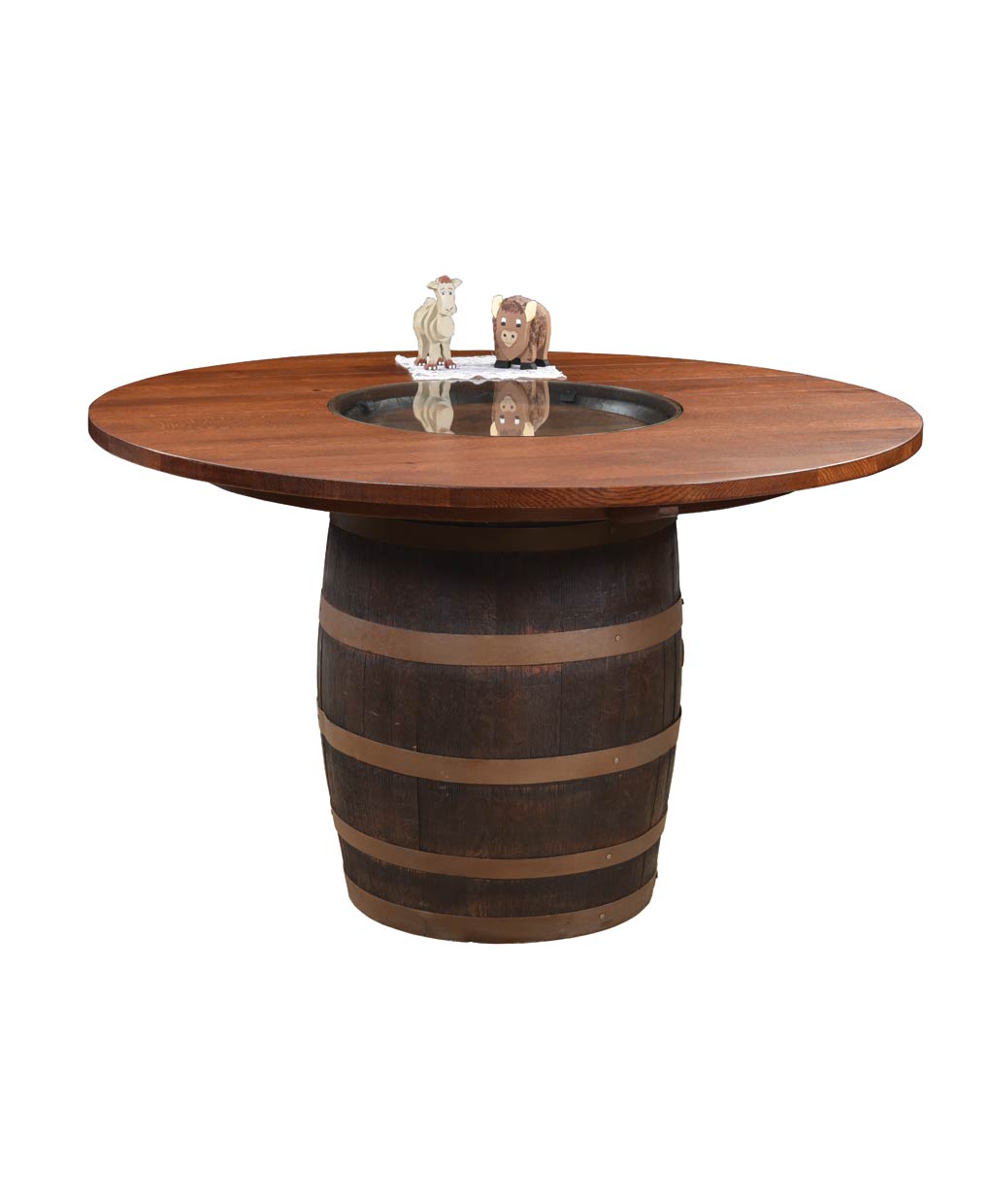 Beautifully aged, our Amish crafted Rustic Barrel Table is perfect for any setting where whiskey or bourbon flow.