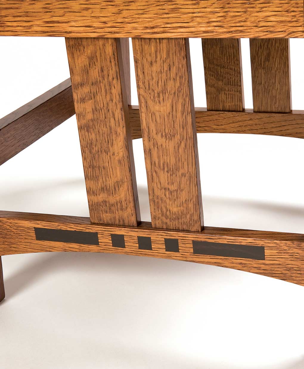 The Colebrook Dining Chair offers ebony inlays on the tops and the sides of the chair to give a touch of class to the mission look. Shown in Quarter Sawn White Oak with Michael’s Cherry stain.