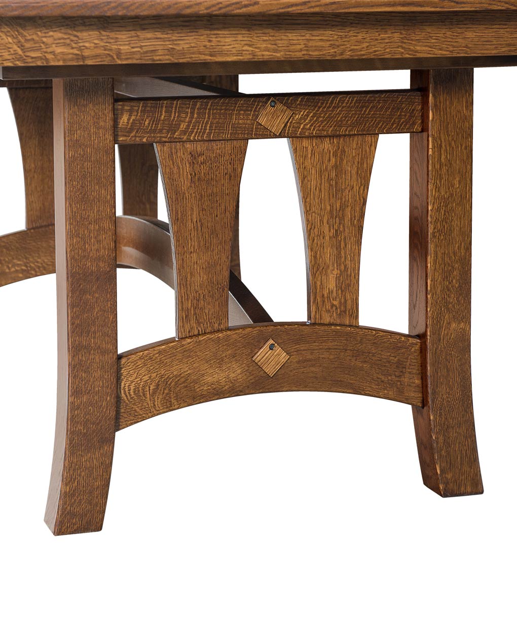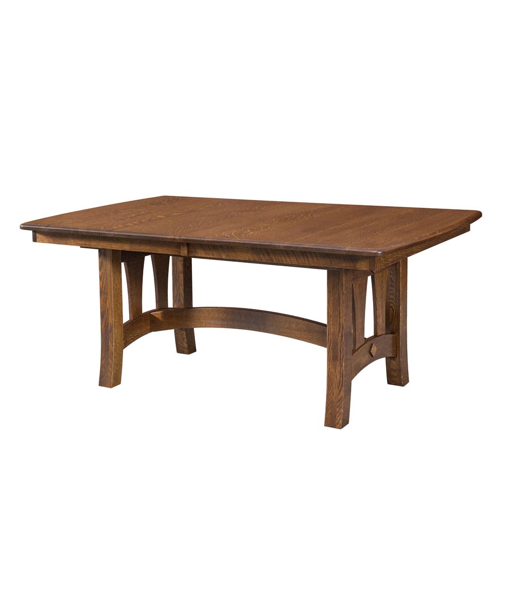 Experience the robust elegance of the Naperville Trestle Table, an Amish-crafted solid wood piece with a unique, curved base design, perfect for any dining room.