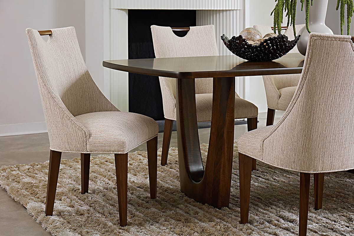The Westal Trestle Table features a modern, sculptural base with a sleek trestle design, handcrafted by Amish artisans for lasting durability and timeless appeal.