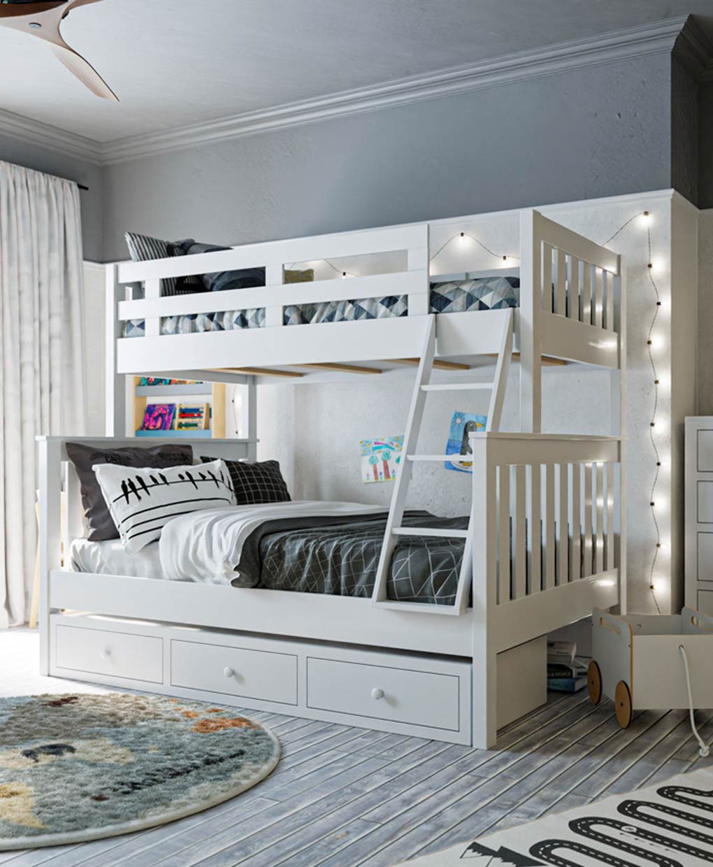 Optimize space with the Fremont Bunk Bed, a robust Amish-crafted solid wood piece, perfect for siblings or sleepovers, blending functionality with charm.