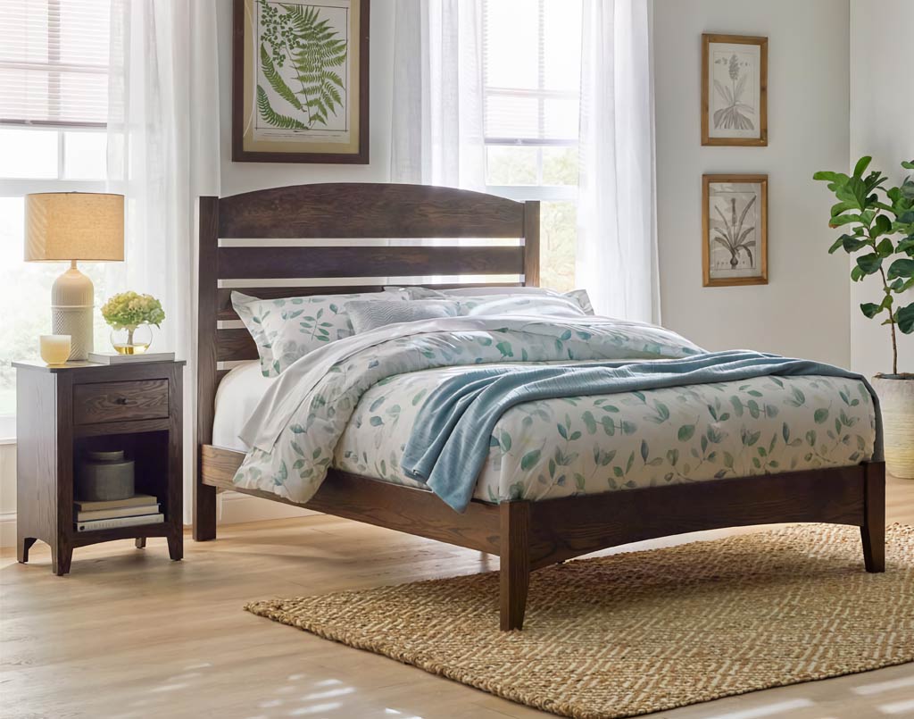 Enhance your bedroom’s allure with the Dover Bed, expertly handcrafted from solid wood by Amish artisans, ensuring timeless elegance and enduring comfort.