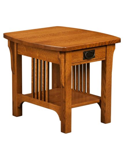 The Craftsman Mission Coffee Table features 1” tops and full extension slides on dovetailed drawers.