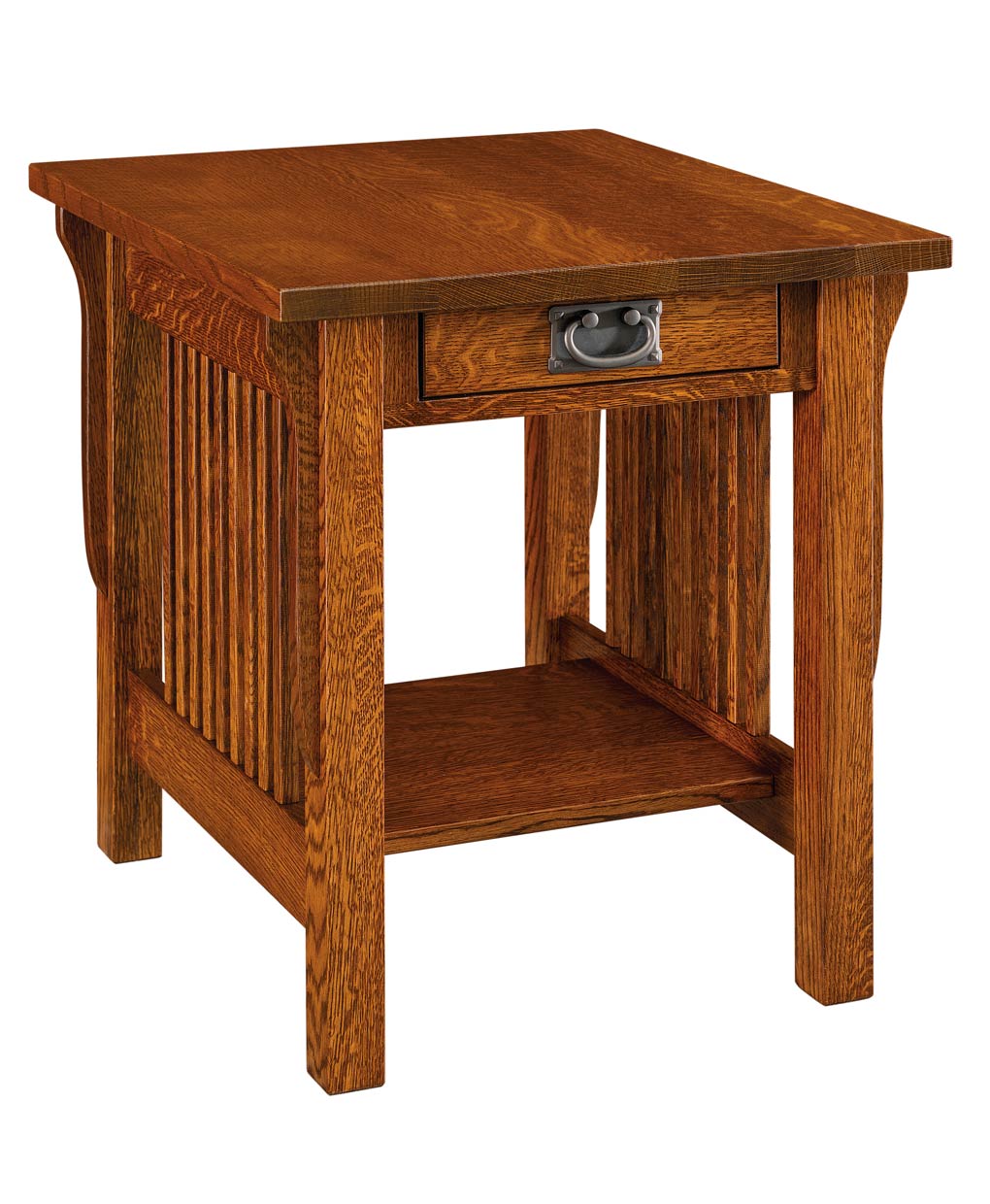 Experience the Landmark End Table, showcasing Amish artistry. Solid wood, a sleek drawer, and intricate details make it the living room’s focal point.