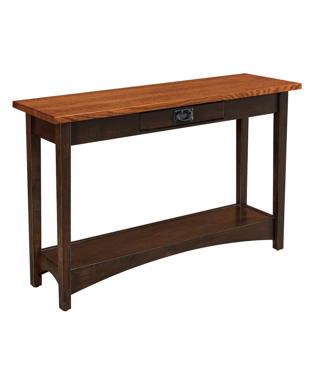 The Arts and Crafts Open Sofa Table adds a timeless classic vibe as a versatile hallway console, featuring sleek lines with lower storage on raised legs.
