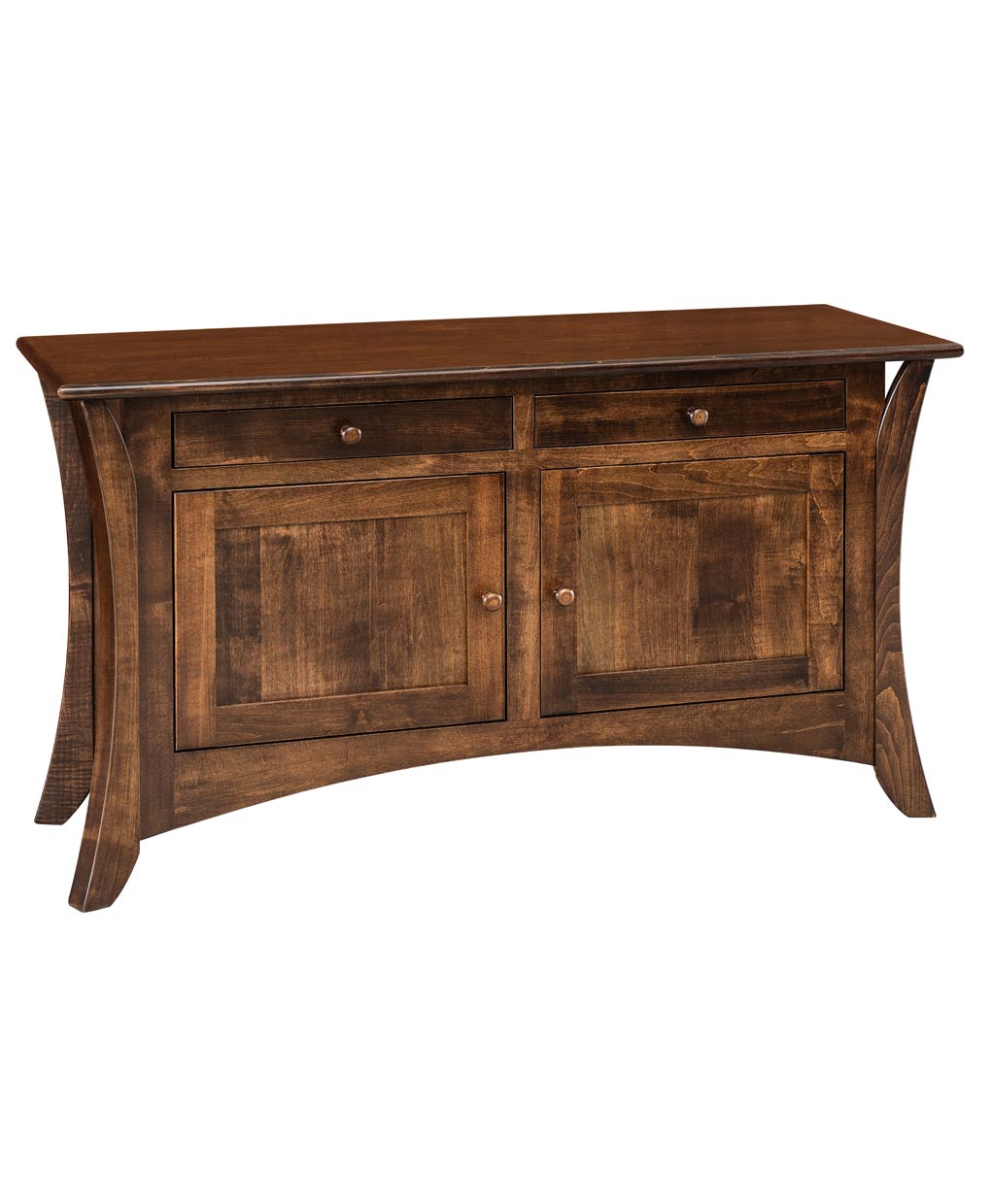 The Caledonia Enclosed Sofa Table showcases a masterful blend of Amish craftsmanship, featuring elegant curved legs and practical storage options with a drawer and cabinet. This timeless piece effortlessly marries functionality with style, making it a perfect addition to any living space.