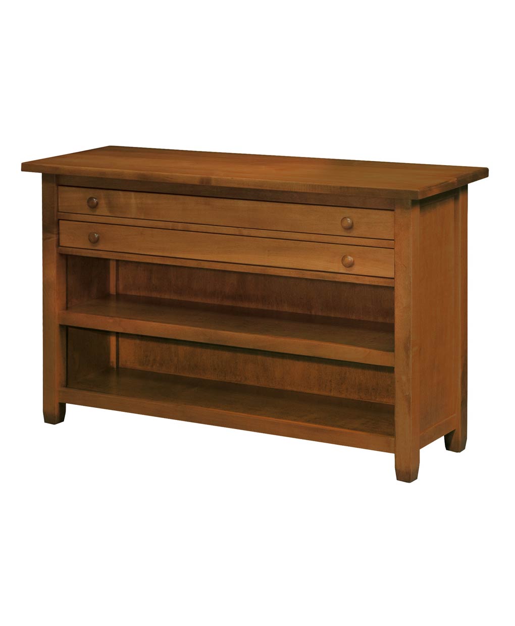 Elevate your home with this finely crafted Amish Kenwood Sofa Table, featuring practical storage and classic Mission styling for any space.