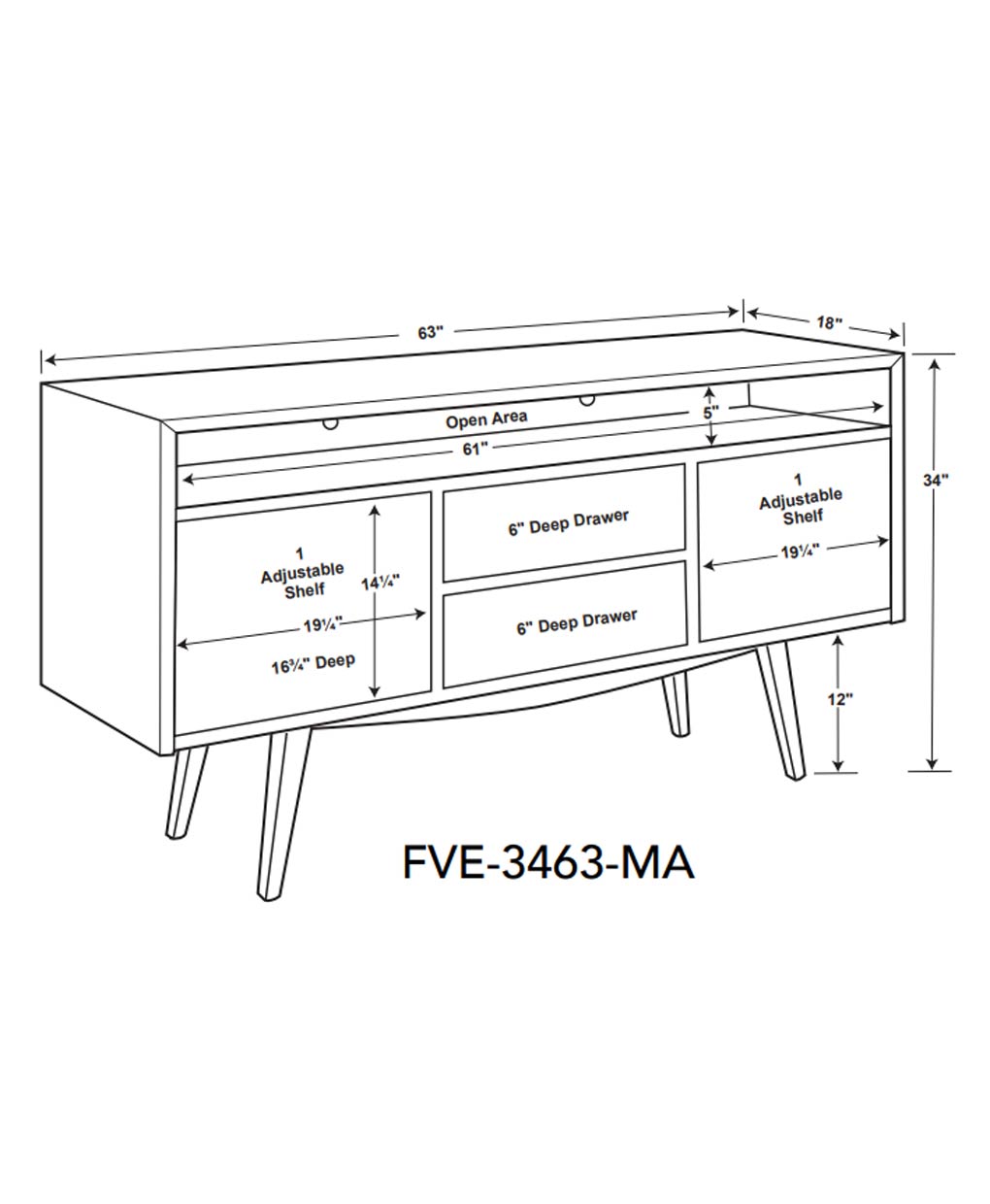 | Overall | 63″ | 18″ | 34″ |