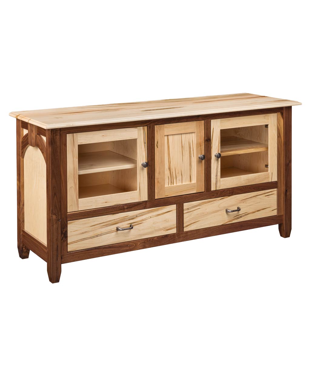 The Kensing TV Stand offers a classic design with its sturdy frame, featuring two open shelves and ample drawer storage for your media needs.