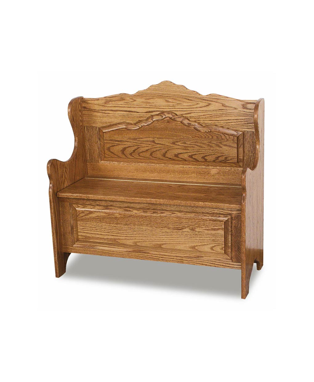 The Amish Sunrise Raised Panel Bench features elegant paneling and a scalloped backrest, showcasing heirloom-quality craftsmanship and solid wood design.