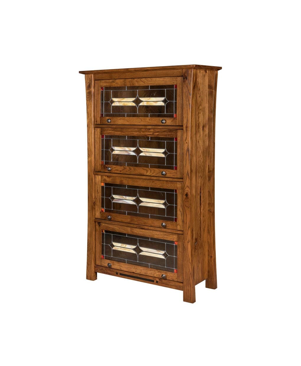 Timeless in design makes the Arts and Crafts Barrister Bookcase a must for any home. Made with true Ebony inlays. Shown in Rustic Hickory with Michaels Cherry stain