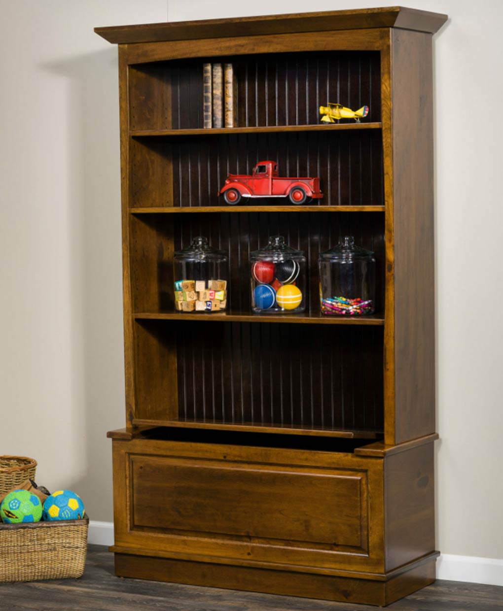 The Baylee Blanket Chest Bookcase features spacious shelves and a lower storage chest, showcasing its heirloom-quality solid wood construction.