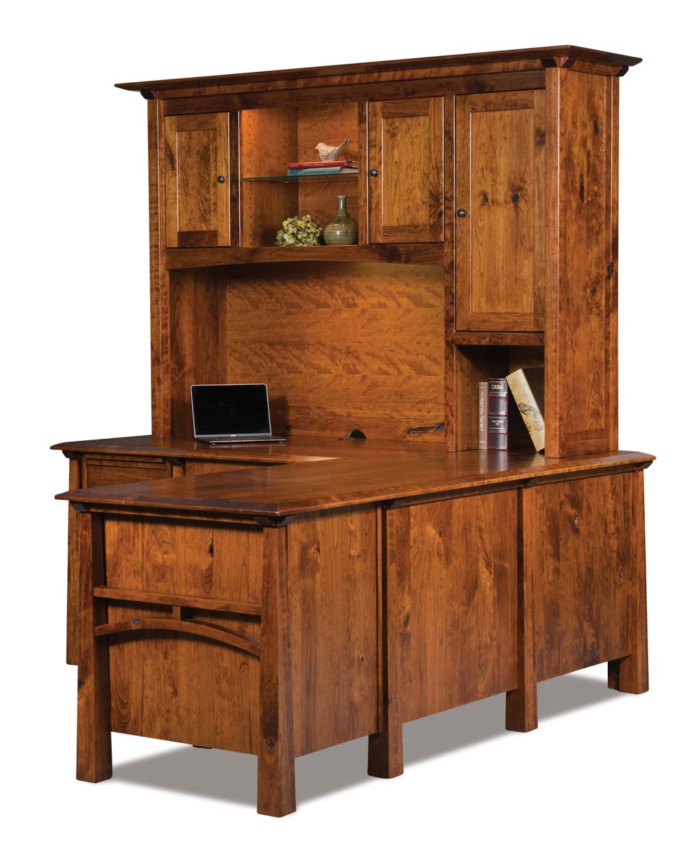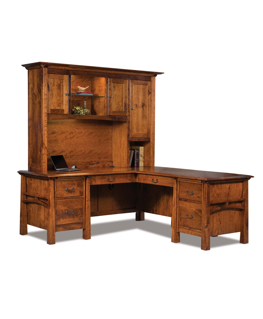 The Artesa L-Desk features a strong solid wood frame, clean lines, and artisan-crafted recessed panels, offering heirloom-quality office function.
