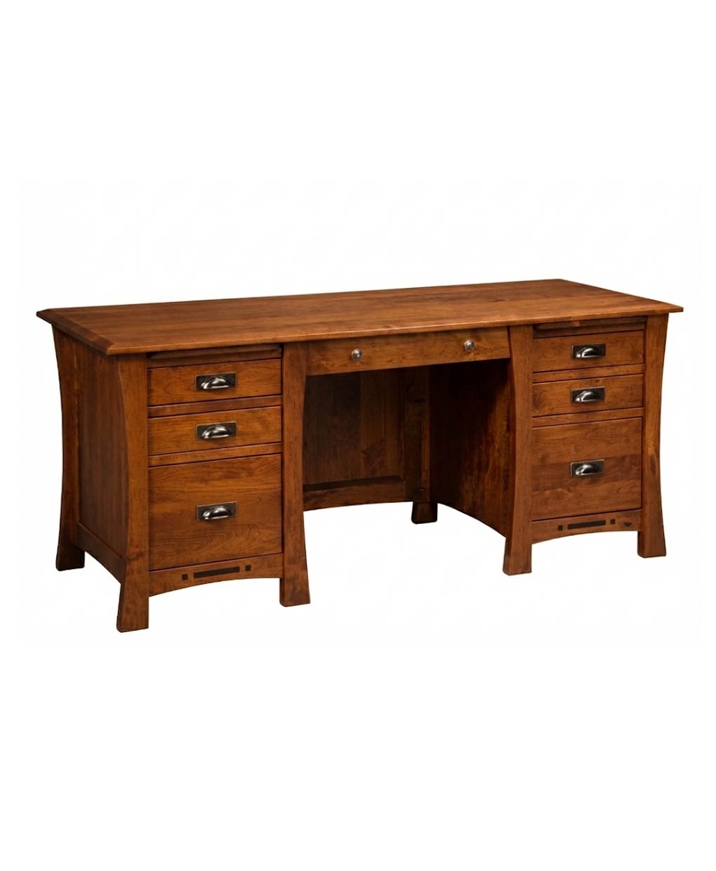 The Arts and Crafts Executive Desk with Finished Back offers a solid, handcrafted structure with deep drawers, embodying timeless style for any office.