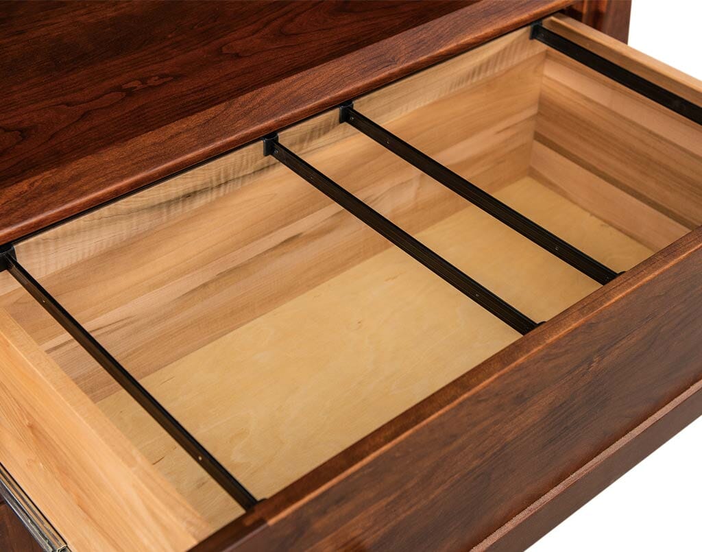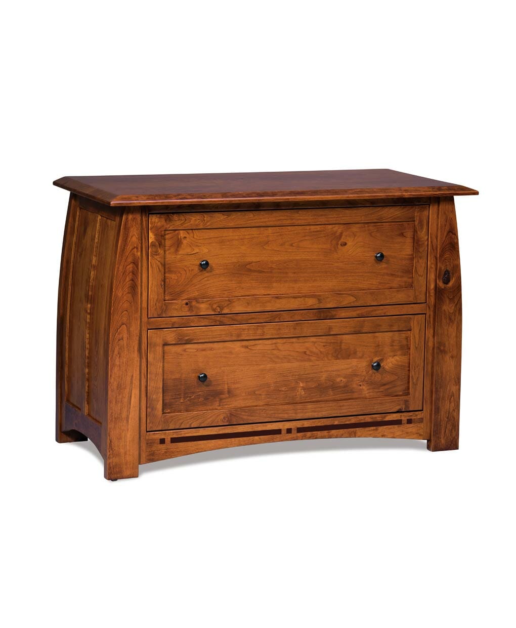 The Boulder Creek 2 Drawer Lateral File Cabinet features a solid wood frame, gently curved sides, and elegant panel detailing for heirloom-quality storage.