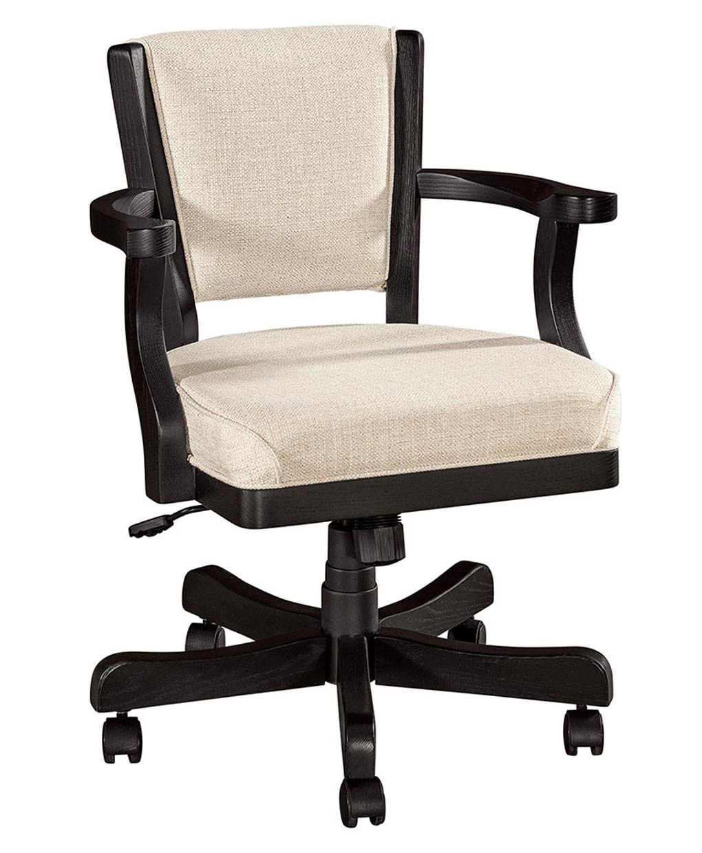The Ravenna Desk Chair blends Amish craftsmanship with ergonomic comfort, featuring a plush seat, curved arms, and an adjustable swivel base.