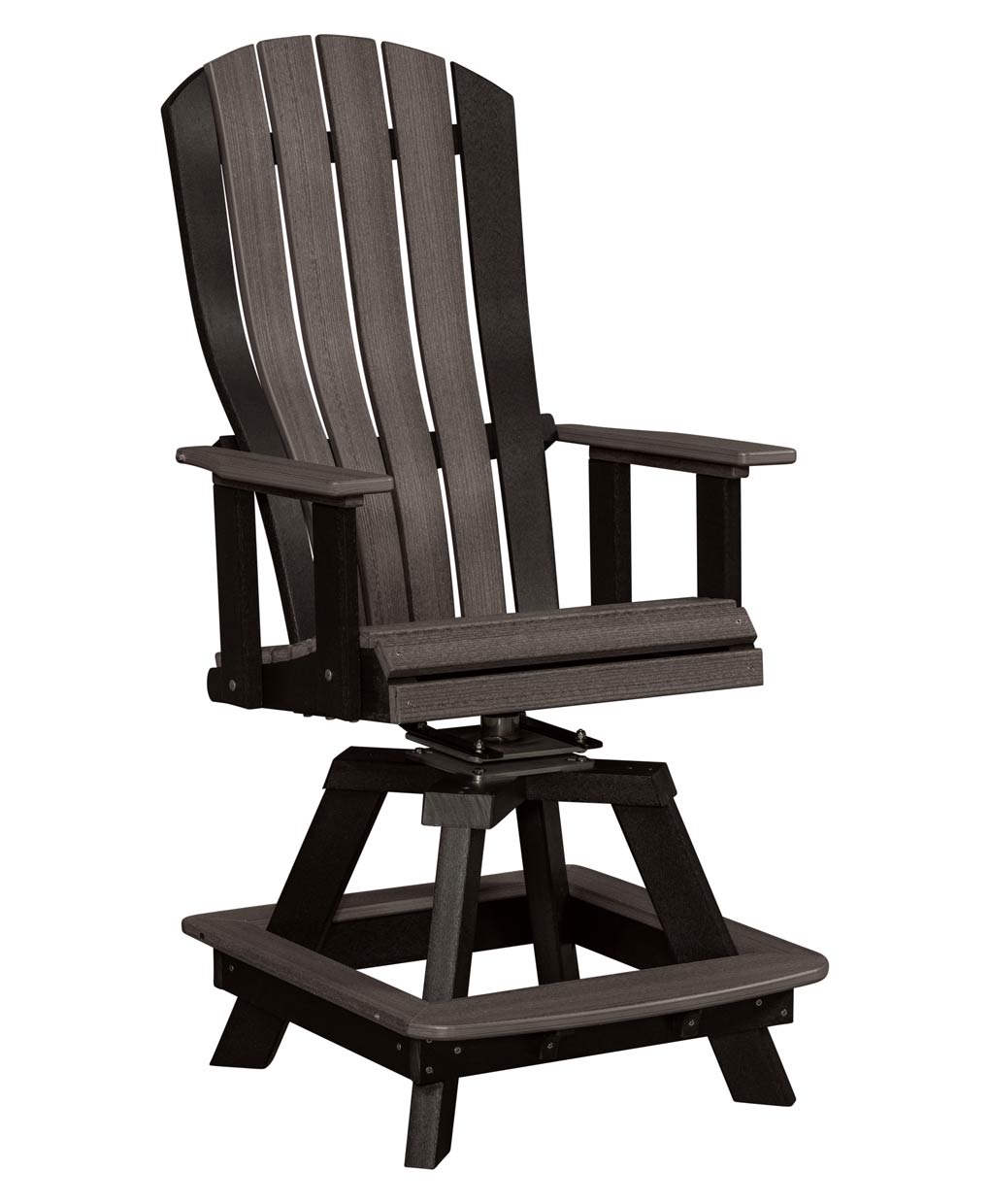 Elevate your outdoor space with the Addison Poly Swivel Bar Stool, featuring a classic slatted back and sturdy armrests for comfortable, artisan seating.