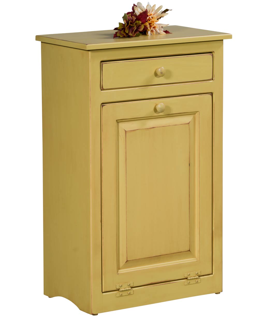 The Vintage Pine Trash Bin is made from Premium Grade Eastern White Pine. Expect some deformities & knots that come naturally with pine. Metal Insert Standard. Choose from 4 different colors plus 7 different rubbed through paint finishes. Give your home a more warm country feeling or a prairie style with different rustic types of finishes to choose from.
