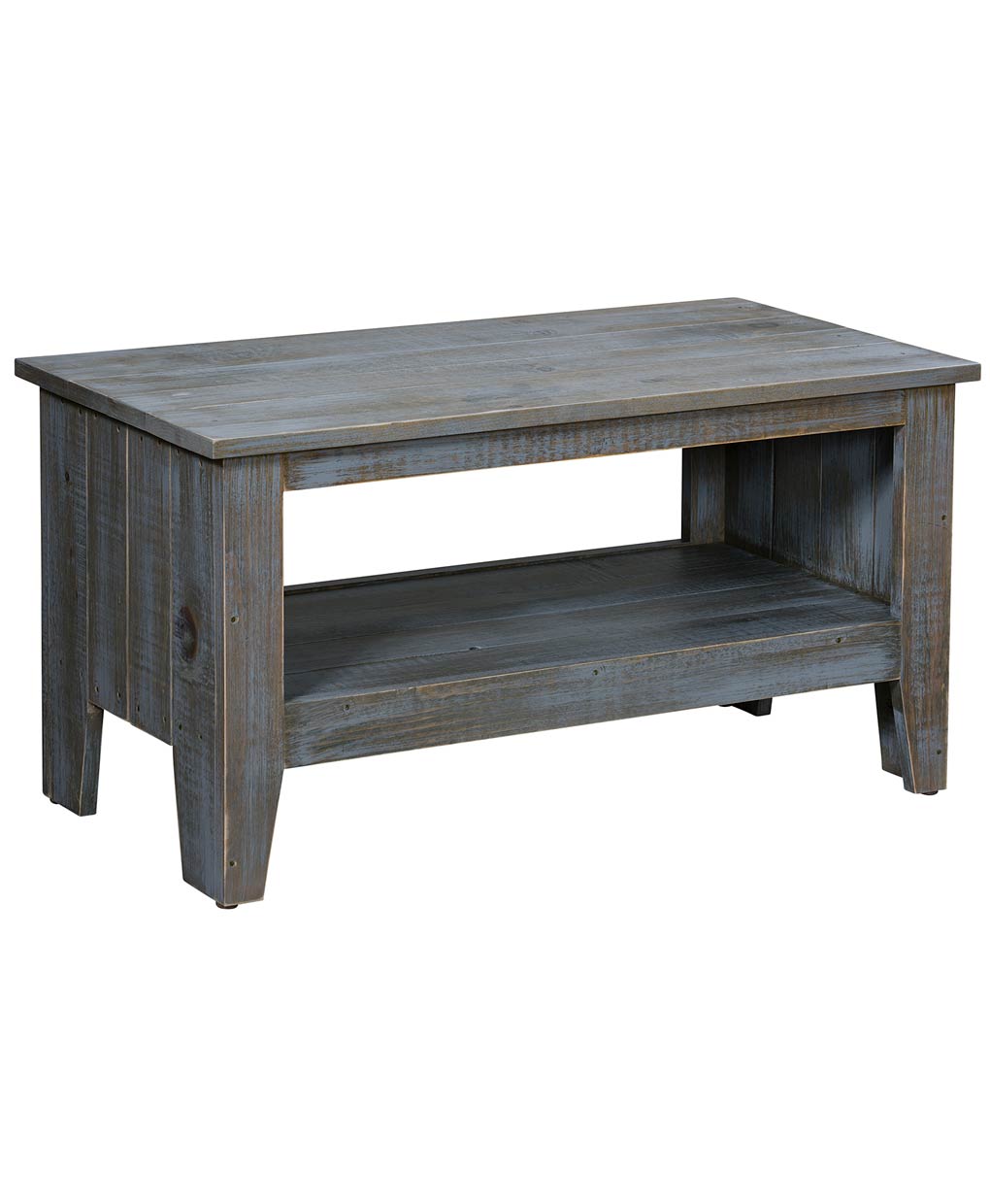 The Gold Mine Pallet Pine Coffee Table is made from Premium Grade Eastern White Pine. Expect some deformities & knots that come naturally with pine. Metal Insert Standard. Choose from 4 different colors plus 7 different rubbed through paint finishes. Give your home a more warm country feeling or a prairie style with different rustic types of finishes to choose from.