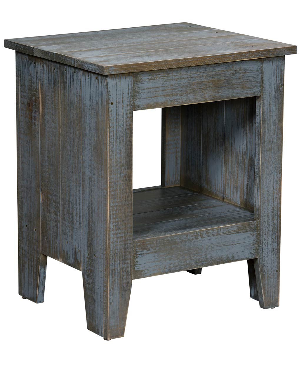 The Gold Mine Pallet Pine End Table is made from Premium Grade Eastern White Pine. Expect some deformities & knots that come naturally with pine. Metal Insert Standard. Choose from 4 different colors plus 7 different rubbed through paint finishes. Give your home a more warm country feeling or a prairie style with different rustic types of finishes to choose from.